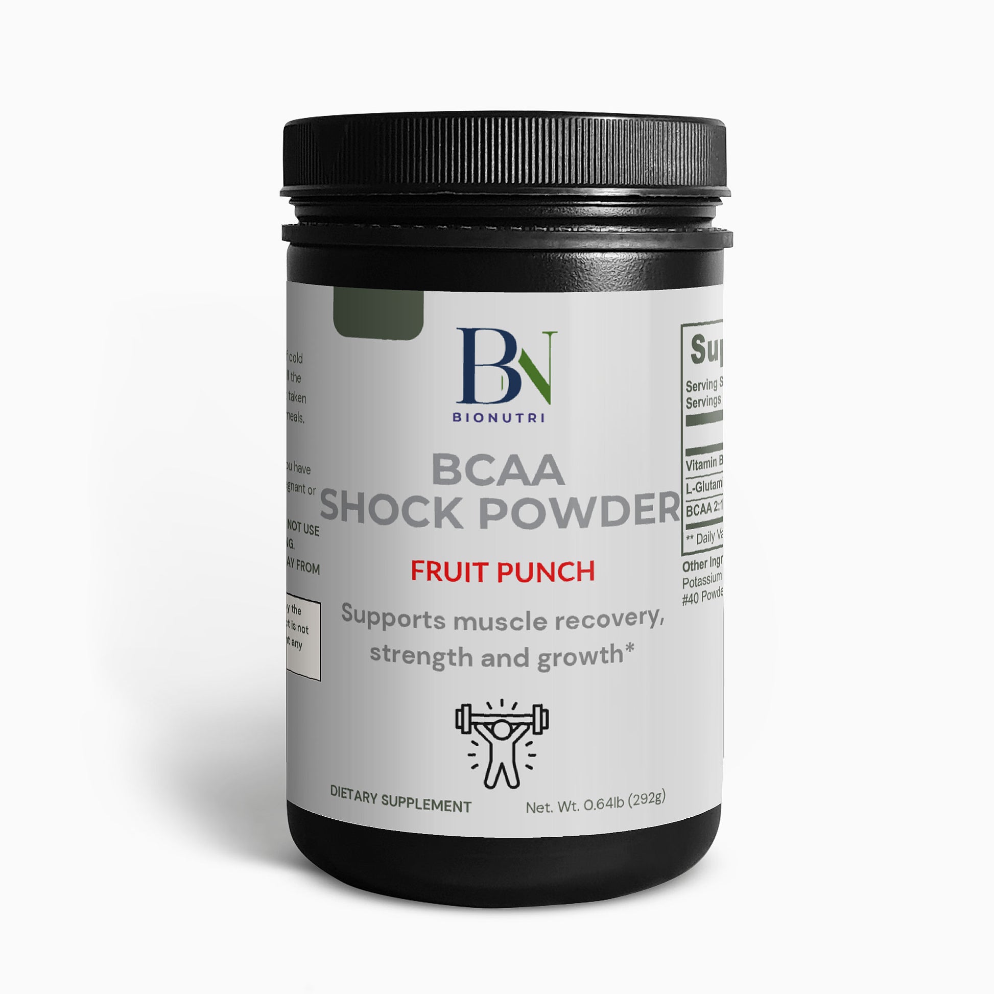 Ingredients:Â Vitamin B6 (as Pyridoxine Hydrochloride), L-Glutamine, BCAA 2:1:1, Citric Acid, Fruit Punch flavor, Potassium Citrate, Silicon Dioxide, Sucralose, Sodium Chloride, Acesulfame Potassium, FD&C Red #40 Powder.