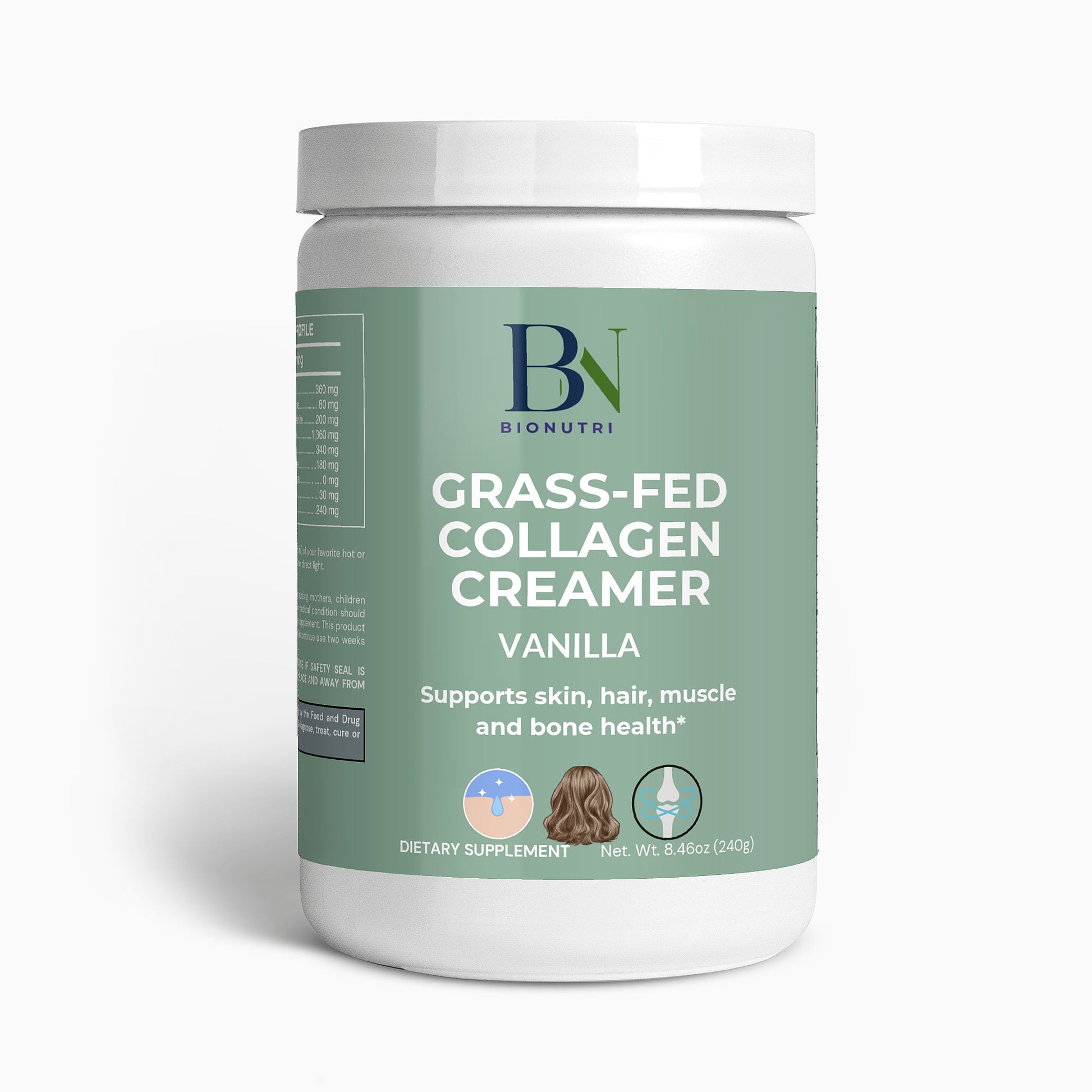 The body produces less collagen as it ages, making it essential for people to supplement with collagen for greater longevity. Our Grass-Fed Collagen Creamer contains types 1 and 3 collagen essential for healthy skin, muscles, and bone.