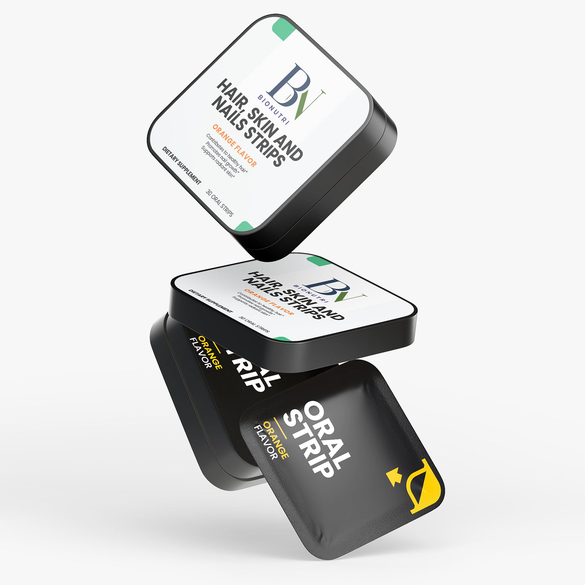 Nourish your natural beauty from within with our Hair, Skin and Nails Strips — a convenient, on-the-go supplement designed to support normal hair strength, skin vitality, and nail health. These quick-dissolving, orange-flavored oral strips provide key nutrients to support your hair, skin, and nail wellness as part of your daily routine — all in a refreshing and easy-to-take format.