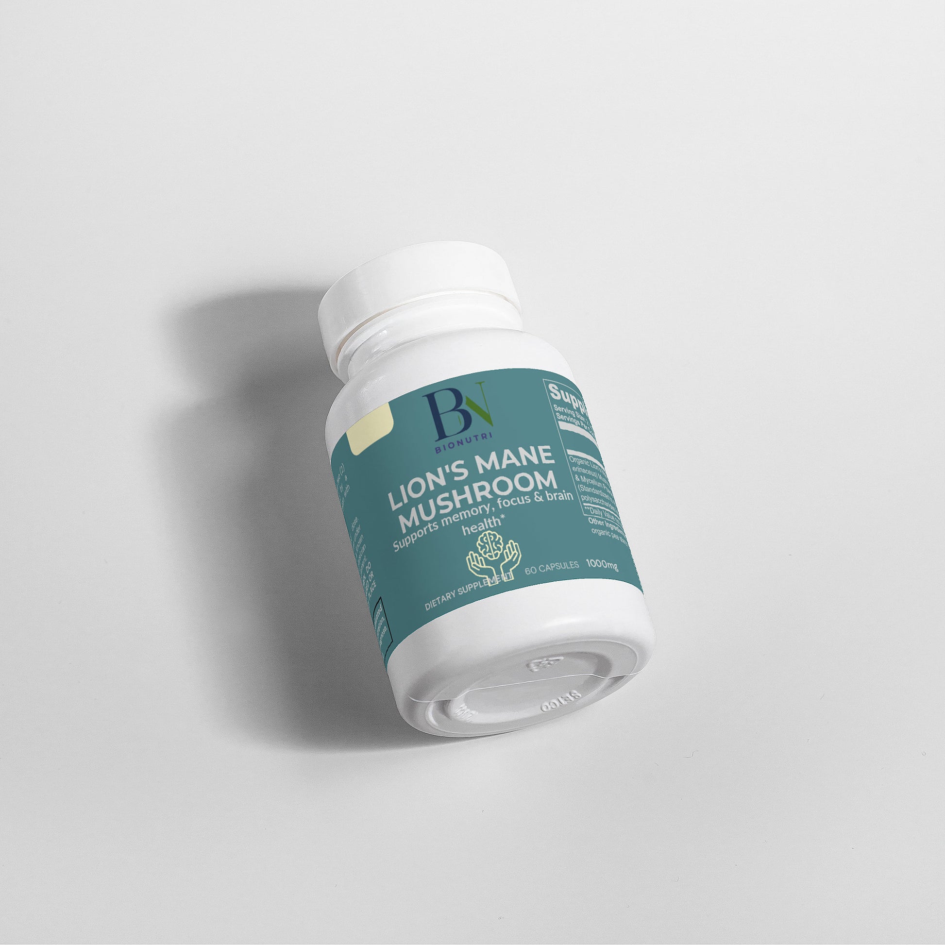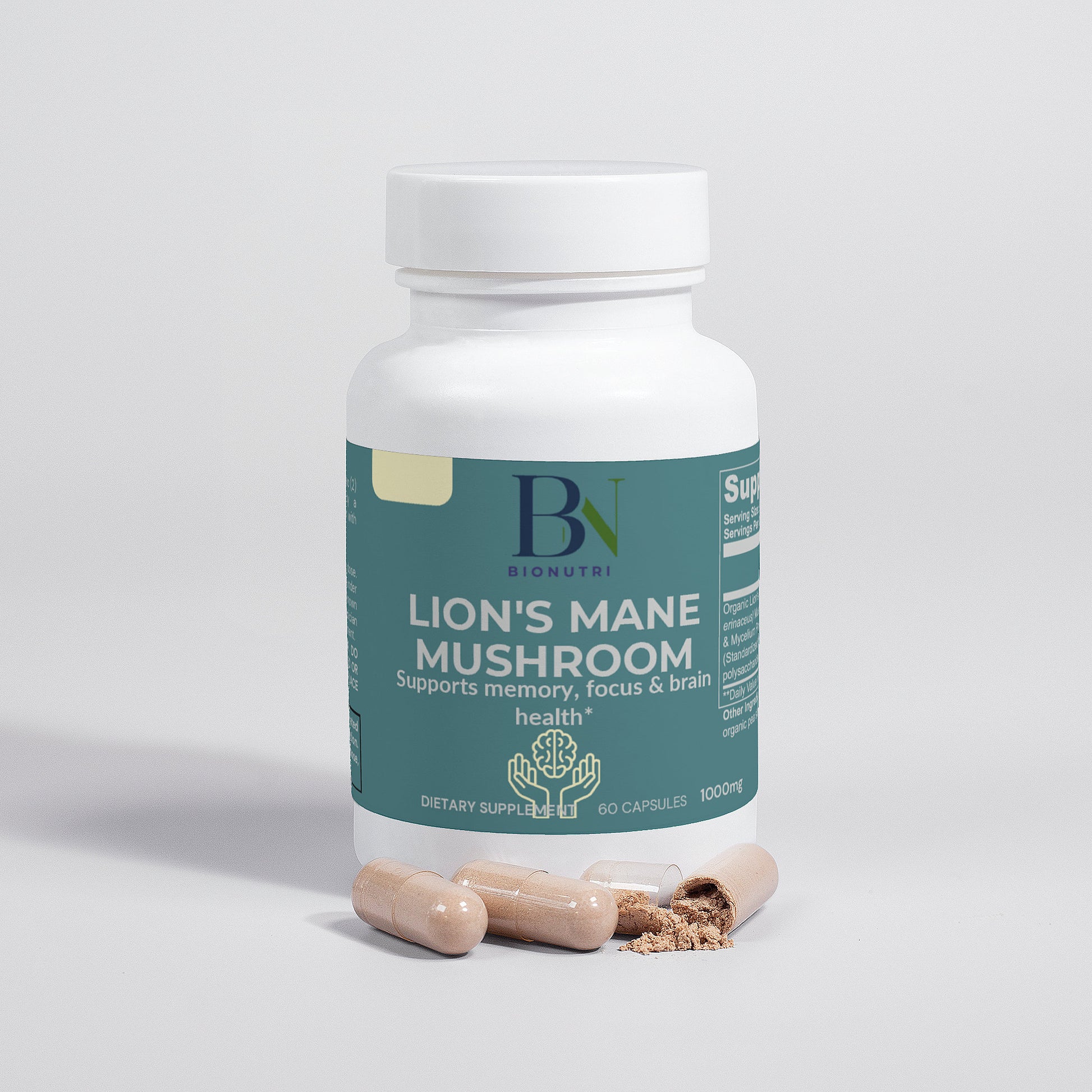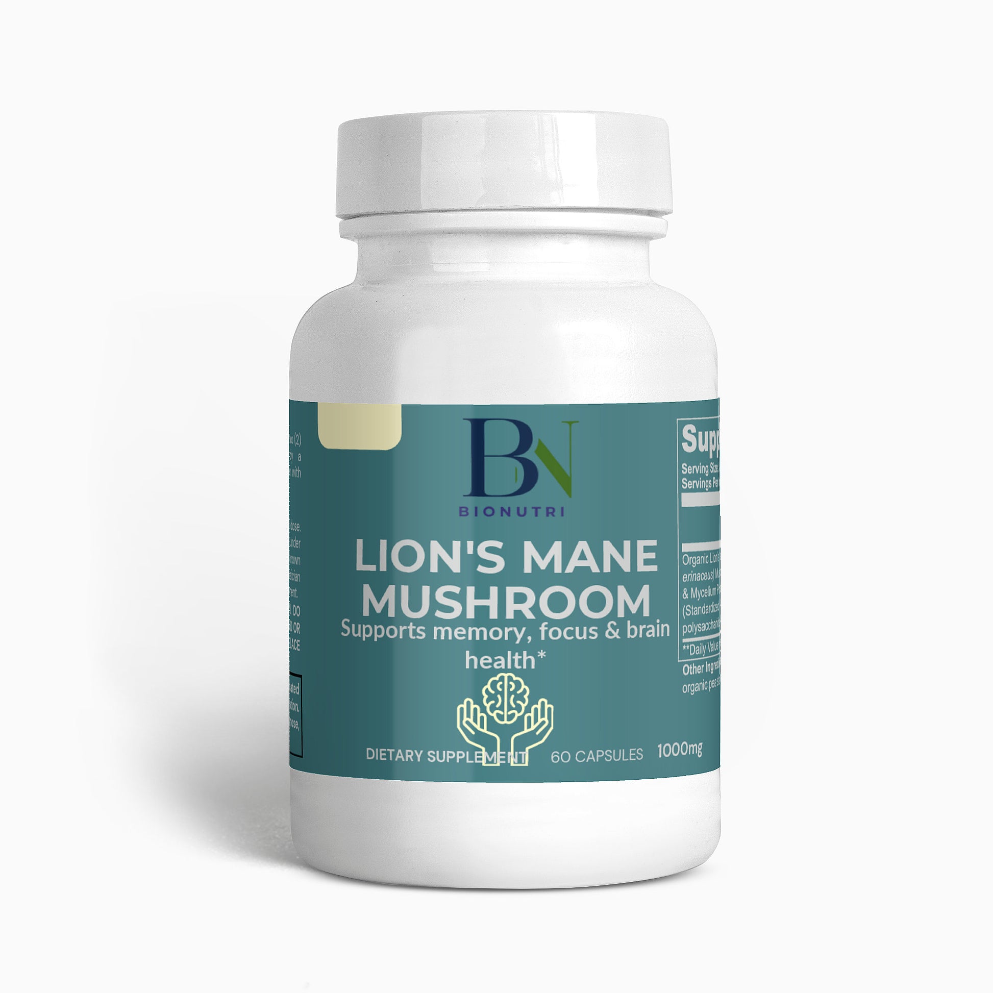 Ingredients: Organic Lion’s Mane (Hericum erinaceus) Mushroom Fruiting Body & Mycelium Powder (Standardized to 40% polysaccharides [400mg]), Organic capsule (pullulan, water), organic pea starch.