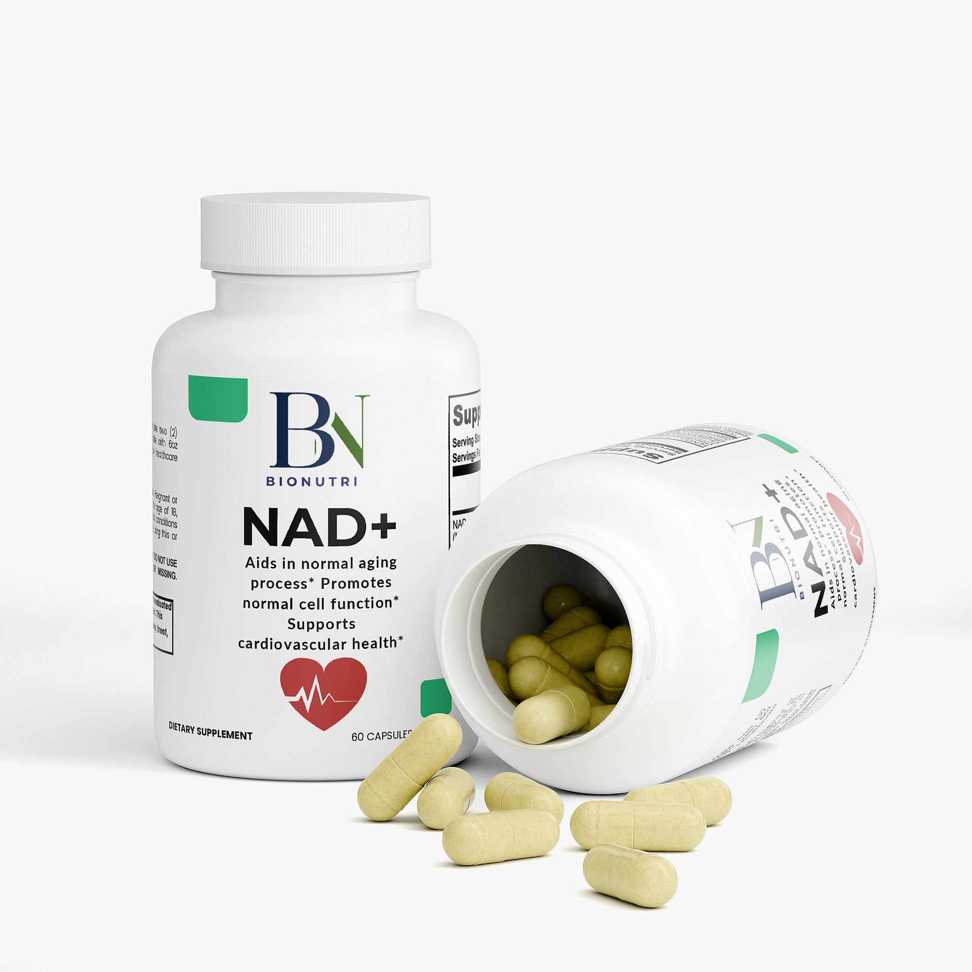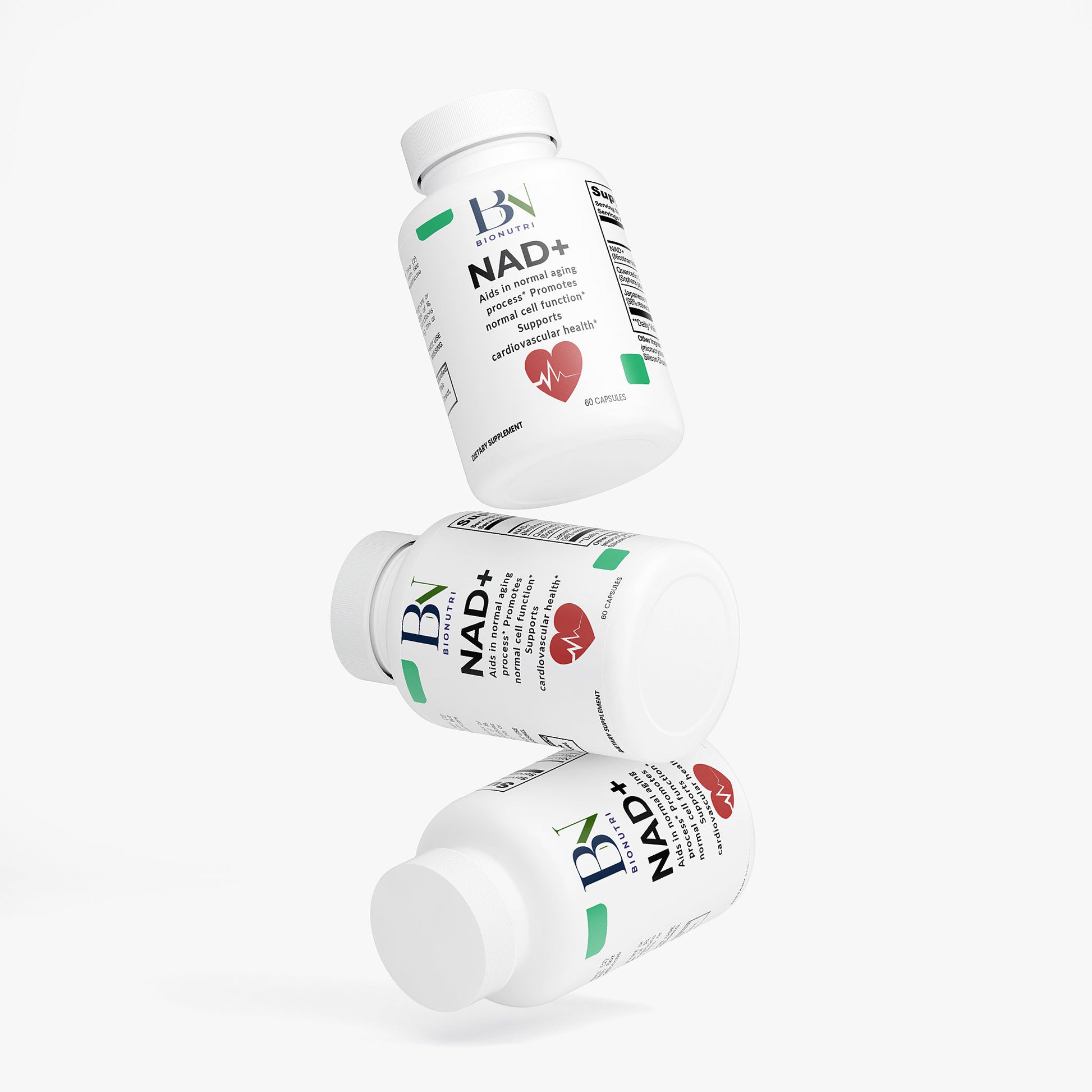 Ingredients: NAD+ (Nicotinamide Adenine Dinucleotide) (500 mg), Quercetin Dihydrate Extract (Sophora japonica) (whole flower bud) (250 mg), Japanese Knotweed Extract (98% Resveratrol) (Polygonum cuspidatum) (root) (150 mg), Microcrystalline Cellulose (MCC), Brown Rice Flour, Olive Oil, Silicon Dioxide, Magnesium Stearate.
