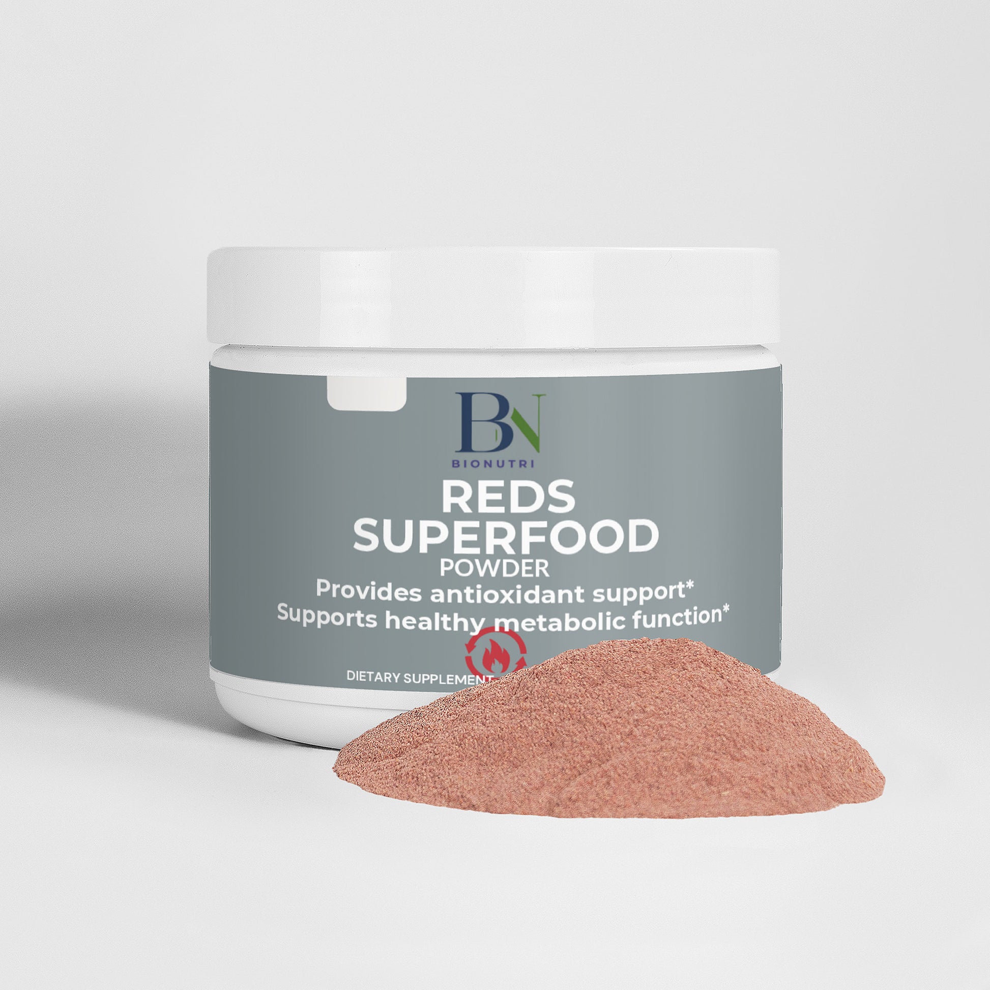 This reds powder supplement offers a rich blend of fruits, vegetables, and botanicals aimed at delivering antioxidants, fiber, and essential nutrients for overall health. The formula includes Beet Root, Strawberry Juice, Hibiscus, and a variety of other nutrient-dense ingredients like Acai Juice Powder and Cranberry Powder, designed to support optimal wellness. With a content of 120 grams, this supplement is perfect for daily consumption, providing a convenient way to boost your intake of vital nutrients and antioxidants to support health and vitality without the need for artificial additives.*