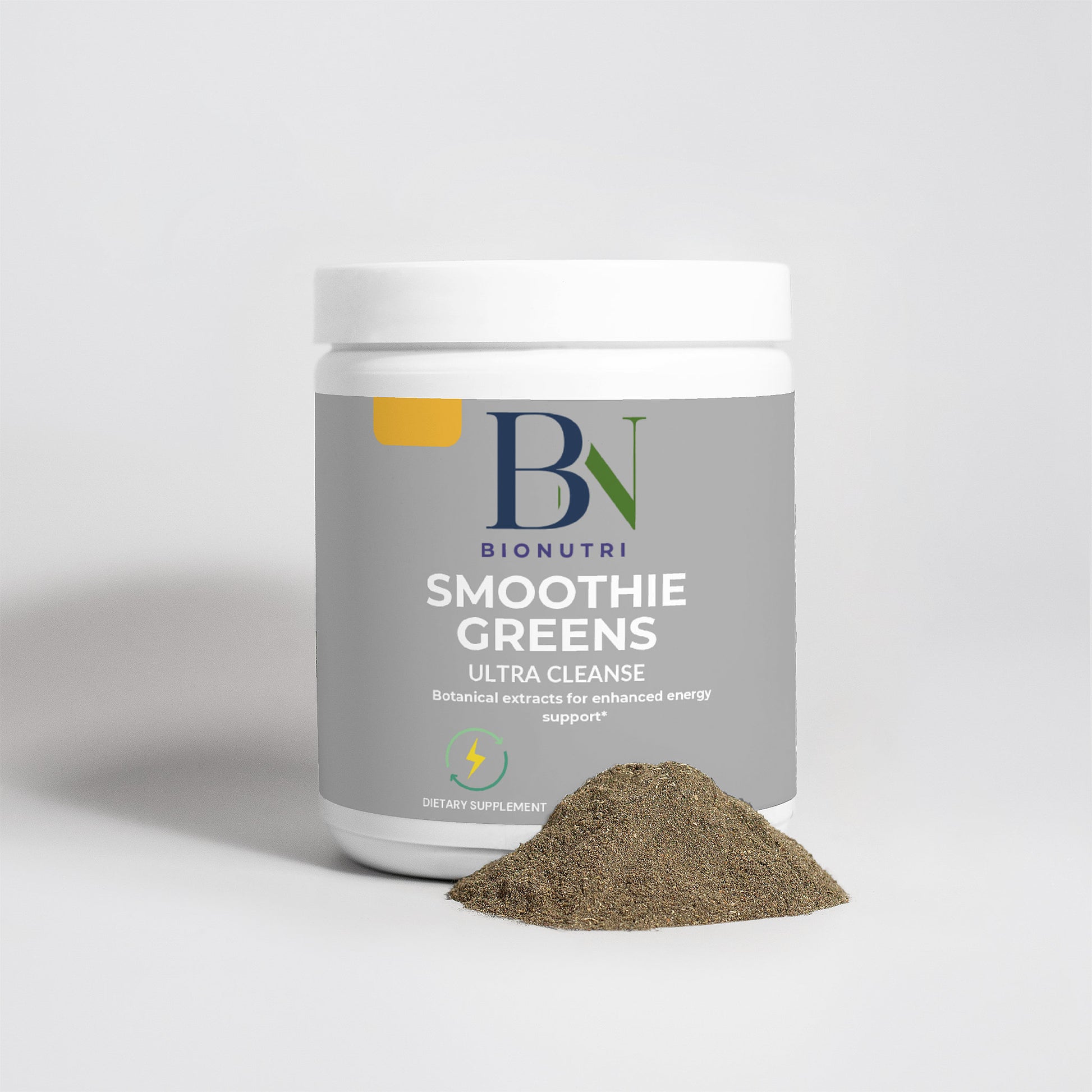 Ultra Cleanse Smoothie Greens is a blend of organic grasses, superfoods, and botanical extracts designed to fuel the body with broad-spectrum nutrients for optimal mental and physical functionality.